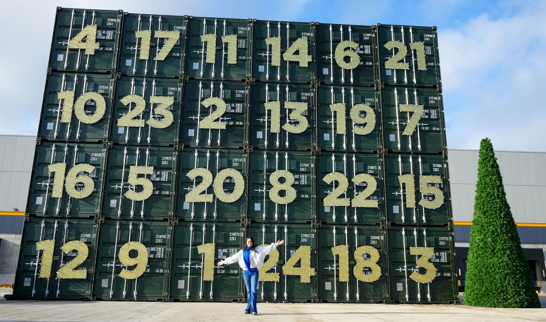 The giant advent calendar is located at Cuboid Self Storage’s Head Office in Chorley, Lancashire, and is made up of 24 steel self storage shipping containers, complete with numbered doors and festive lights. Each day Cuboid will donate a container's worth of gifts with enough presents to make it an unforgettable Christmas for local families, ensuring that thousands of children across the region wake up to a gift on Christmas morning.
